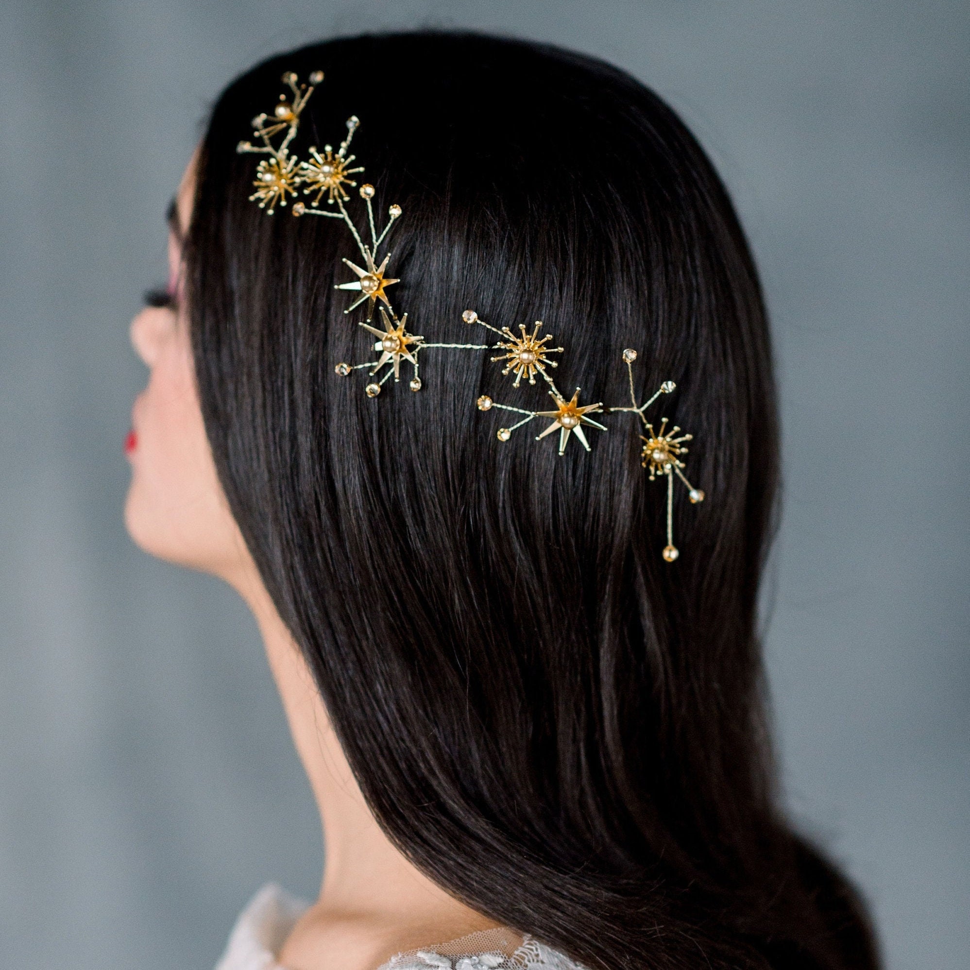 Gold Star Hair Vine Silver Constellation Headpiece Rose Gold Etsy Uk